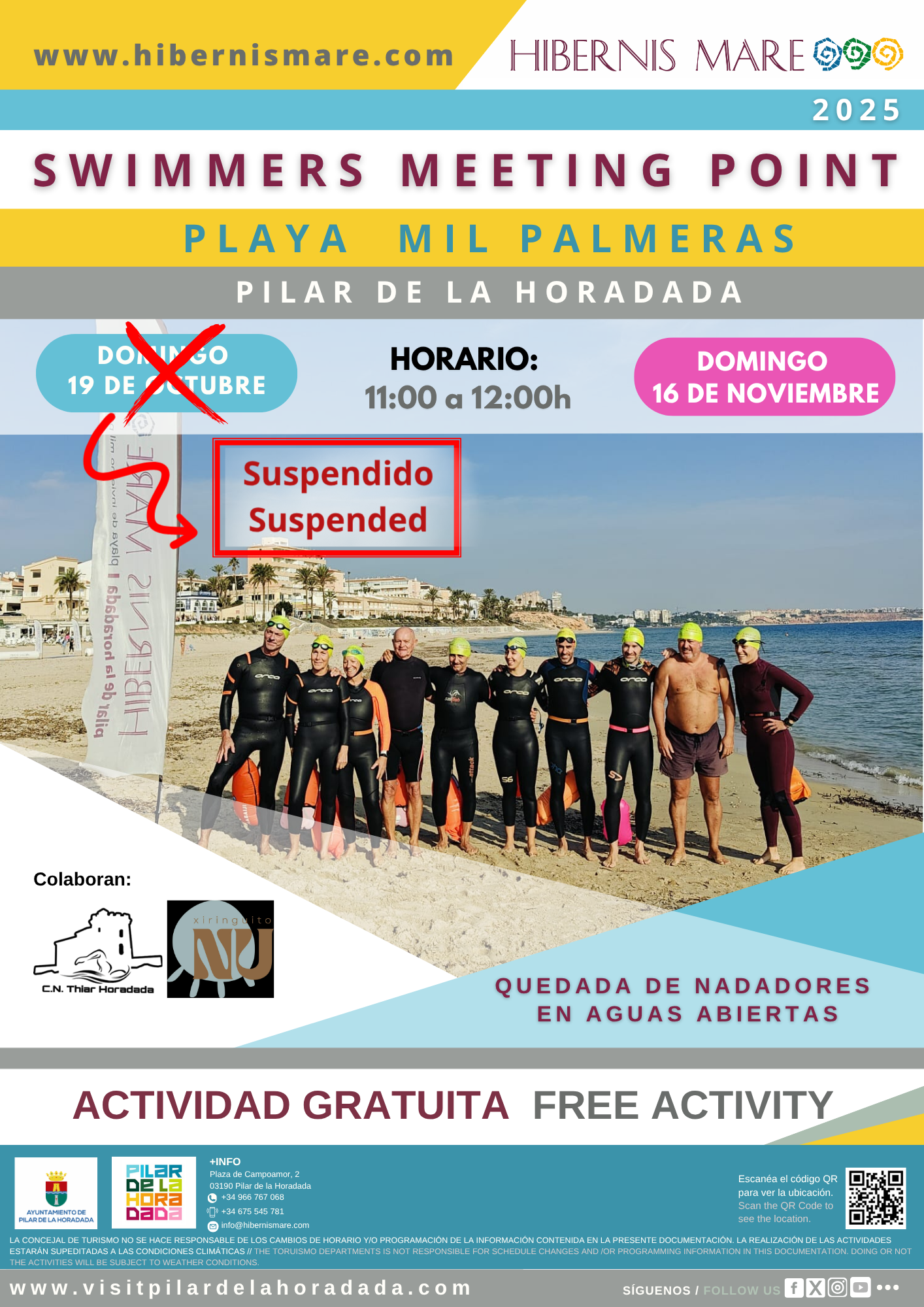 La actividad de Swimmers Meeting Point prevista para este domingo 19 de octubre queda suspendida.